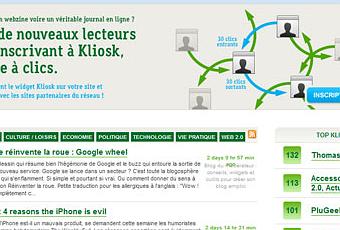 “En fait Kliosk.com est un kiosque à journaux électronique permettant aux internautes de découvrir les derniers articles publiés par les blogs ou sites partenaires. Les internautes peuvent découvrir les titres de ces articles sur le site kliosk.com, mais également sur les très nombreux widgets Kliosk, hébergés par ces mêmes partenaires.”