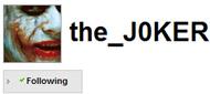 Avis aux utilisateurs de Twitter. Peut-être avez-vous déjà reçu la nouvelle…Un infiltré de Gotham est parmi nous…Depuis maintenant deux jours, on peut trouver un certain clown au sein de la communauté. Le Joker. Selon plusieurs sites, il se pourrait que ce soit un petit coup de marketing viral pour la sortie du dvd et du blue-ray… Tout ce que je sais, c’est que le Joker me suit déjà sur Twitter. Genre trop cool on^^.