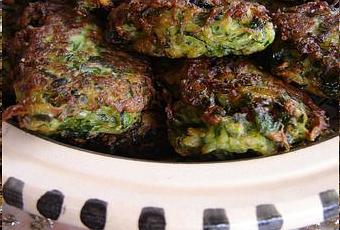 Arrange grated zucchinis in a clean kitchen towel. Press hard to remove water (do this above a soup plate, for you will get a lot of zucchini water).