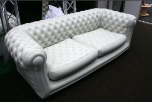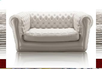 Ce nouvel article, présenté durant le salon Maison & Objet 2008 nous a particulièrement tapé dans l’œil. Un canapé look chesterfield, mais gonflable, idéal pour vos futures garden party. Blofield, par le studio de création Blofield Entreprise Néerlandais, offre la possibilité de possédé tout un salon, dans une simple mallette une fois dégonflé. Très résistant, livré avec sa pompe électrique, cet ensemble ravira tous les amateurs de confort en plein air.