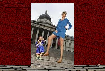 He Pingping, l'homme le plus petit du monde, a posé mardi aux côtés de Svetlana Pankratova, la femme aux jambes les plus longues. Cette séance de photographie insolite était organisée sur Trafalgar Square, à Londres, à la veille de la sortie du "Livre Guinness des records 2009".