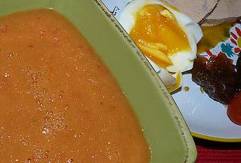 Un petit gaspacho bien frais dont la recette non modifiée se trouve dans le livre "Bar à soupes" d'Anne-Catherine Bley.
