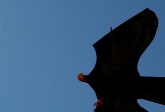 Impressionnant avec sa couleur noire et sa large envergure, inquiétant avec ses ailes qui claquent bruyamment au vent, l'immense oiseau plane à quelques mètres au-dessus du sol.