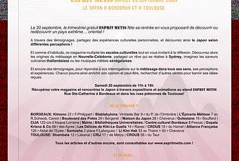Choses promises, choses dues, vous trouverez sur ce communiqué les lieux de dépot du magazine ESPRIT METIS avec a l'honneur le JAPON !!!!!!!