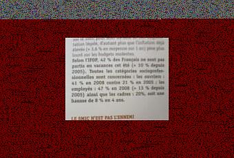 Pour la premiere fois depuis longtemps, j'ai vu des militants CGT distribuer des tracts. Le message de defense du pouvoir d'achat risque de faire mouche. Et l'absence de vacances pour beaucoup (voir la photo) est bien le signe d'un manque d'argent poLire la suite...
