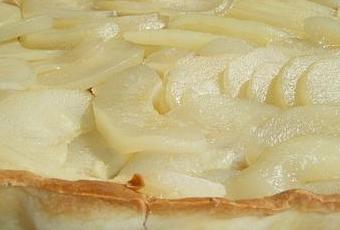 Découpez les poires en tranches fines et disposez les sur la crème.