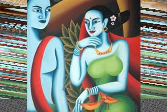 peinture de Chittra Singh (site)On s'est revu, lui et moi... on s'est touché... on s'est embrassé... on a fusionné... c'était comme ça a toujours été entre nous : intense, fusionnel et silencieux.