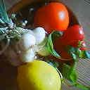 - toutes sortes d'herbes fraîches, ici on a rajouté du persil frisé et du basilic.