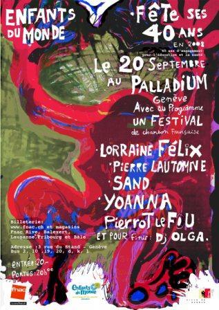 Vous voulez écouter et découvrir quelques nouveaux talents de la scène Genevoise ? Alors n’hésitez pas, rendez vous ce soir au Palladium pour la soirée des 40 ans d’enfants du monde. Les bénéfices de la soirée seront utilisés pour les projets d’éducation d’Enfants du Monde.