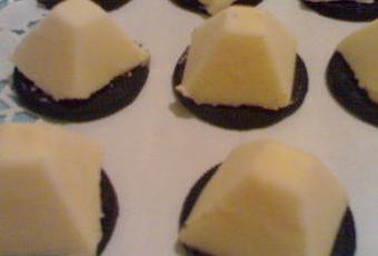 séparer les oréo, reservez leur crème que vous utiliserez pour coller les pyramides sur les biscuits.