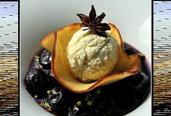 Dessert avec un contraste de température, avec les cerises tièdes et la glace bien froide. La badiane vous rappelle trop Noël ? Pas de problème, on peut ne pas la mettre du tout ou la remplacer par d’autres épices comme la cardamome ou autre.