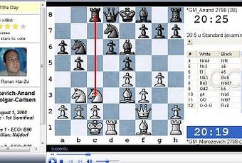 partie d'échecs diffusée par ICC opposant Vishy Anand à Alexander Morozevich, lors du tournoi Rapide de Mayence 2008. La partie est commentée par le grand-maître d'échecs israélien Ronen Har-Zvi.
