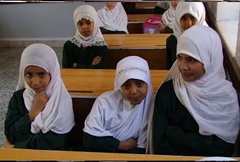 Le carillon de l'école retentit à nouveau. La récréation est terminée. Drapée dans son voile noir, Najmiya, l'institutrice fait signe aux quelque 40 élèves de baisser d'un ton pour pouvoir commencer les cours.