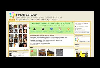 La rencontre virtuelle du premier Global Eco-Forum: responsabilité, durabilité et eco-innovation a commencé le 22 septembre 2008 et se prolonge jusqu’au 17 octobre 2008. De nombreuses organisations de différents secteurs participent à ce réseau professionnel, dynamisé par des experts et consultants invités à partager leurs connaissances et générer des idées innovantes pour une société plus responsable et durable. Vous pouvez aussi y prendre part , les inscriptions se font sur le site du Global Eco-Forum.