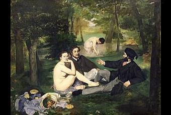 -Merci à Edouard Manet, pour Le déjeuner sur l'herbe ;1863, huile sur toile, 208 × 264,5 cm. Musée d'Orsay, Paris.