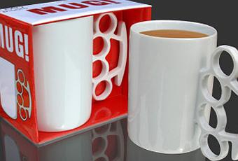 Pour vous la jouer bad boy du petit déjeuner ou être sur que personne ne vous cherche des noises au bureau, on vous présente le Knuckle Duster Mug. Disponible ici pour £10 environ.