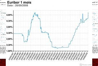 L’EURIBOR, c’est l’Euro interbank offered rate , c’est à dire le taux auquel les banques se prêtent de l’argent. Plus il est fort, plus cela signifie que la confiance dans les autres banques s’étiole gentiment. Le risque à un prix, c’est justement l’EURIBOR.