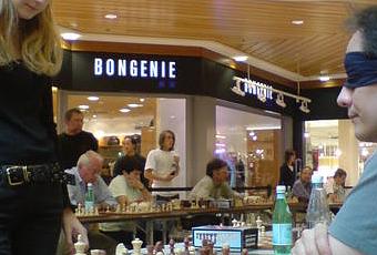 La partie à l'aveugle a aussi suscité intérêt et admiration dans le public: de nombreuses personnes ont demandé des détails et étaient vraiment bluffées par cette performance.