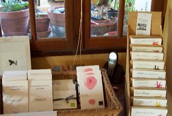 Les livres sont rangés dans “la petite librairie des champs“. Ici, on voit “Cousu Main” qui côtoie “Jacques Brémond”.