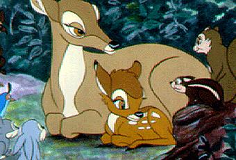 Moi vous l'aurez deviné, je suis du côté de Bambi, et mes enfants sont régulièrement sermonnés sur le fait que c'est un méchant chasseur qui a tué le mère de ce pauvre faon qui à cause de cela est maintenant sous prozak et doit passer tout son temps libre chez lez pédopsys animaliers.
