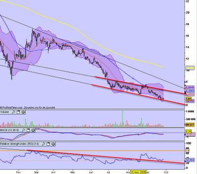 Le titre Recylex (RX) fait couler beaucoup d'encre. Le titre est en effet revenu à un cours trés trés bas et un rebond est sur toutes les lèvres. Le couloir descendant en cours va en ce sens. Actuellement le titre évolue sur ses supports et devrait revenir sur 6.40 euros et en cas de franchissement développer un potentiel à 7 euros.