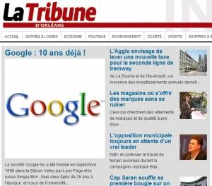 Google vient de fêter ses 10 ans. L’occasion de revenir sur l’histoire de cette toute petite société montée dans un garage devenue le géant que chacun connaît… [la suite sur le site de la Tribune d'Orléans]