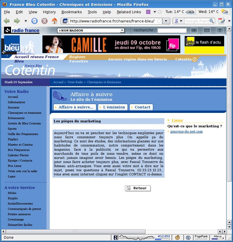 Mon égo en ressort grandi et je remercie Radio France Cotentin. J’espère que la mention d’Internet a atteint son but et que l’audience de l’émission a été boostée.