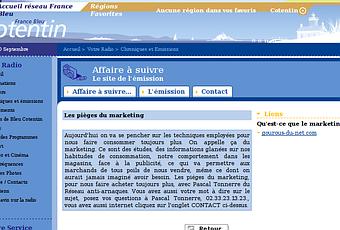 Voici une capture du site Radio France qui montre que pour donner la définition du terme marketing, le journaliste a privilégié Gourous du Net plutôt que toutes les autres sources traditionnelles.