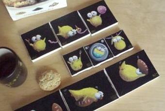 ...en suivant les liens, vous remarquerez que les bonbons oeufs sur le plat et ver de terre ont disparu... dans le bec d'une poule...