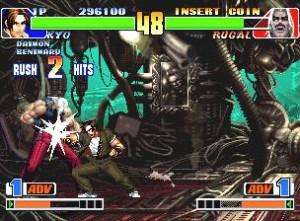 Il convient déjà de répondre à une question qu’on m’a déjà posée : pourquoi celui-là et pas les autres (sachant que le 2003 est dispo sur la même machine) ? Outre une question de budget, la réponse est assez simple : le 98 fait partie des meilleurs. Déjà, il s’agit du cinquième épisode de la série (qui a donc débuté en 1994, bravo). Les King of Fighters ont une histoire, assez complexe (puisqu’il s’agit en fait de plusieurs histoire entremêlées), qui se relate à travers les épisodes. Pas de ce KoF 98. Ici, il s’agit de ce que SNK baptise un “Dream Match”, à savoir une sorte de compilation des quatre précédents épisodes.