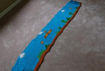 ...rien de tel qu'une bonne écharpe ! Marre des trucs ringards ? Optez pour l'écharpe ultime du geek. Ultime comme le premier niveau de Super Mario Bros par exemple. C'est en effet le défi que s'est lancé une jeune américaine en tricotant une écharpe d'environ 9 mètres reproduisant le fameux "World 1.1" : Elle en serait apparemment à 1/3 du niveau et se concentre uniquement sur les décors pour l'instant. Espérons qu'elle la finisse avant cet hiver... Vous pouvez suivre l'avancement du projet sur son blog.