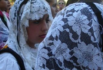 Madrid c’est : une série de portraits de filles, en mantilles, blanches ou noires, les cheveux jais dont les tresses se confondent avec les broderies de leurs vêtements.