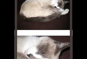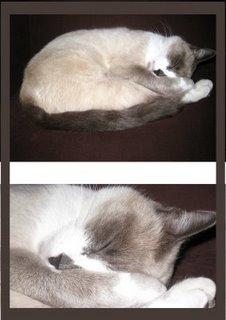Hier au soir, je me suis aussi aperçue que les couleurs de l'atelier : "crème" et "fève de cacao" étaient aussi les couleurs de Monsieur Bonbon, la mascotte du quartier et notre chat par la même occasion... sur le canapé de la maison !