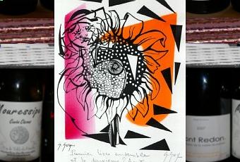 Image : une des oeuvres encartées dans les exemplaires de tête. Aucune ne comporte les mêmes couleurs. Il s’agit ici de celle encartée dans mon exemplaire personnel.