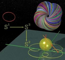 - Les chapitres 7 et 8 présentent quelques notions de topologie, dont la fibration de Hopf. Là par contre, le contenu est très dense, il faudra que je revoie ce sujet au ralenti pour pouvoir prétendre avoir tout compris… Heureusement, j’ai pu me raccrocher aux Cercles de Villarceau et aux Cyclides de Dupin