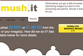 En plus de réduire le poids de vos images, Smushit héberge les images optimisées. Mais attention, Smushit ne mentionne pas la durée de cet hébergement. Utilisez plutôt le fichier Zip qui vous est offert. Lorsque vous soumettez un fichier GIF à Smushit, il sera converti automatiquement au format PNG8. Format plus approprié pour le Web.