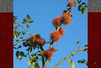 C’est lundi. Ne vous en déplaise, contrairement à vos collègues, je ne vais pas vous raconter mon week-end devant la machine à café. Rien à raconter, faut dire (je vous ai déjà parlé de Calder). Juste un truc. C’est l’automne, tout ça, et l’on se balade volontiers par monts et par vignes. Forcément, vous avez dû croiser un bédégar sur le bord des chemins. Rien à voir avec le chanteur jovial à la bouille ronde (encore que, il se promène peut-être aussi à la campagne le dimanche). Non, les bédégars, ce sont ces boules rougeâtres hirsutes qui confondent les églantiers avec des sapins de Noël. On les remarque plus facilement quand les feuilles ne résistent plus au moindre coup de vent. Et des coups de vent, hier, il y en a eu. Vous êtes vous jamais demandé ce qui pouvait se cacher derrière cette excroissance végétale excentrique et chevelue ? Eh bien, ne vous en déplaise (ça fait deux fois), c’est une galle. Laquelle galle cache de minuscules larves d’insectes, les cynips, bien à l’abri dans leur capsule rubiconde et décoiffée. Et pourquoi bédégar, me direz-vous ? Ce mot serait issu de deux mots persans signifiant rose et vent. Réduit en miettes, le bédégar aurait été utilisé jadis comme tabac à pipe ! Sortez vos briquets. Vous allez épater la galerie devant la machine à café.