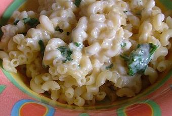 400g de coquillettes cuisson 5mn - 75g de roquefort - 10cl de lait concentré non sucré - 2 branches de persil - sel - poivre