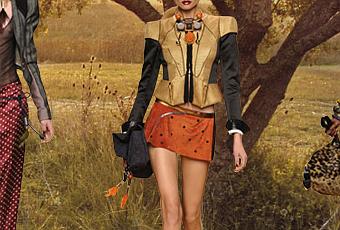 La collection se veut très accessoirisée : colliers, boucles d’oreille, bracelets et chaussures sont étonnement chargés de plumes et de visages africains abstraits. Dans la jungle des sacs, le python se dresse face au léopard… Mais ce sont les cuirs multicolores qui auront finalement le dernier mot…