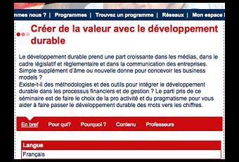 Existe-t-il des méthodologies et des outils pour intégrer le développement durable dans les processus financiers et de gestion ? Le parti pris de ce séminaire est de faire le choix de la pro activité et du pragmatisme pour vous aider à faire passer le développement durable des mots vers les chiffres.
