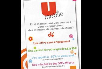 Pour aborder ce marché, les Magasins U proposeront donc une gamme de cinq mobiles (Nokia 2610 notamment), des cartes prépayées SIM vendues seules et une offre de cinq recharges allant de 5€ à 35€. Le but étant de donner du temps de communication sans engagement en toute simplicité mais aussi d’associer le couple Carte U / Mobile U. Cette nouveauté permettra aux utilisateurs de recharger leurs crédits à l’aide de leurs points Carte U (carte de fidélité gratuite).