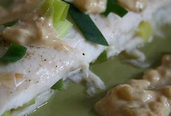 Couper les filet de poisson en deux. Garnir la 1ère partie de poireaux et déposer sur ceux ci le 2ème filet de poisson. Renouveler l'opération avec les 3 autres filets.