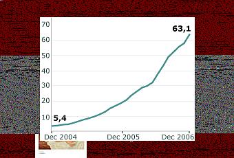 [2] « Entre décembre 2004 et décembre 2006, le nombre de blogs dans le monde est passé de 5,4 à 63,1 millions selon Technorati. La blogosphère a donc vu sa taille multipliée par plus de 11 en 2 ans. En octobre, ce sont 100.000 nouveaux blogs qui sont créés par jour, et 55 % de blogs seraient actifs, c'est-à-dire mis à jour à un rythme d'au moins une fois tous les trois mois » (source)