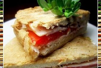 En Italie, un panino est simplement un sandwich, mais ailleurs, le mot désigne plus spécifiquement un sandwich chaud et aplati dans une presse à croques. Celui-ci est très bon, avec la fraîcheur de la tomate alliée à la saveur typée du fromage de chèvre et la délicatesse de la dinde fumée...
