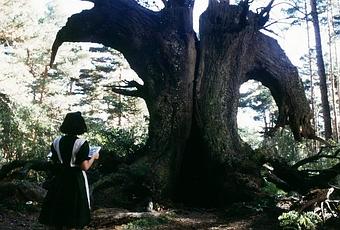 Jong Romano, couverture pour Alice au Pays du Merveilleux Ailleurs, Au Bord des Continents, 2000.Quant à l'influence des images de Rackham sur ce film, c'est une autre histoire. On a déjà vu les formes d'arbres tordus, qui doivent peut-être autant à l'univers de Tim Burton qu'à celui de Rackham (mais Tim Burton connaît très probablement lui-même très bien l'oeuvre de Rackham). Qu'il nous soit juste permis de faire allusion au livre que tient Ofélia au tout début du film (mes excuses si je n'ai pas d'image à montrer): c'est un livre de conte de fées illustré en silhouettes, genre de représentation dans lequel s'est particulièrement illustré Arthur Rackham...