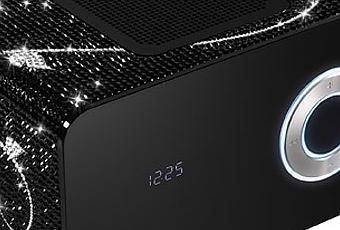 Quand Bling My Thing personnalise le magnifique Cubo Elements de Sonoro, ça donne un radio-réveil brillant et très élégant. Entièrement recouvert à la main de pas moins de 3900 cristaux Swarovski, le Elements Stardust a parfaitement réussi à rester sobre mais néanmoins très bling bling. A réserver aux fans du casque Swarovski ! Prix non communiqué.