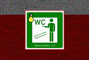 Ma contribution à sauvez willy et la planète ... affichez cette petite pancarte dans les toilettes de votre entreprise qui est, j'en suis sûr, toutes lumières allumées 10x trop de temps que nécessaire. Quand on quitte les waters, on éteint et pis c'est tout !