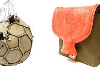 vieux ballons de football, voici des nouveaux modèles: des sacs à main conçus avec des vieilles bouillottes des années 60...
