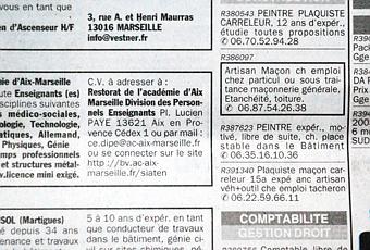 Pages petites annonces du quotidien La Provence du mardi 7 octobre. Vestner France Ascenseurs recrute « Technicien d'Ascenseur H/F pour un poste dans la région de Marseille. Un peu plus bas dans la colonne, on cherche un conducteur de travaux ». Entre les deux, cet encart: