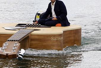 Le chanteur australien Josh Pyke a fait faire pour son clip "Make You Happy" une guitare-bateau géante.